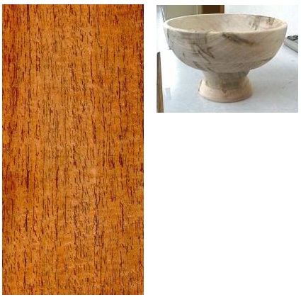 Presenta un suave veteado. Fibra entrelazada y espiralada. Contiene cristales. Olor característico agradable debido a la presencia de resinas y aceites. Albura impregnable |