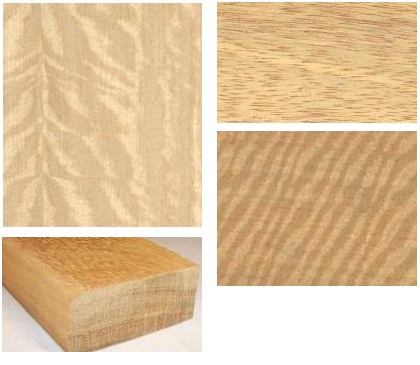 Fibra ligeramente entrelazada. En despieces radiales, aspecto moirée (ondulado o alistado). Elevado contenido de sílice. Puede producir irritaciones en la piel. |