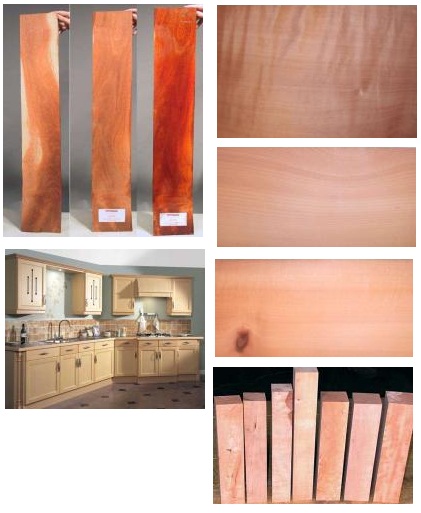 Color albura blancuzco. Color duramen rosado claro o achocolatado que se oscurece con el tiempo. |