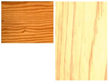 Color albura: blanco amarillo claro. Color duramen: rosa marrón pálido. |